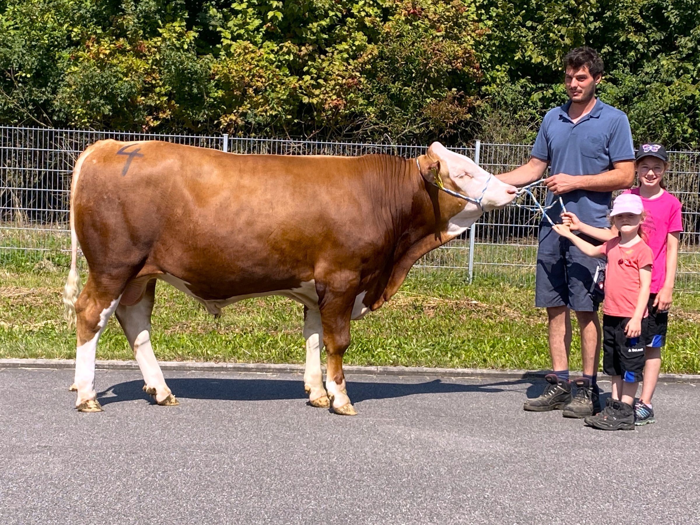 Sechs Zuchtbullen mit weit überdurchschnittlichem Zuchtwertniveau standen zum Verkauf und wurden von niederbayerischen Betrieben zum Durchschnittspreis von 2.717 € für den Deckeinsatz ersteigert. An die Spitze hatte die Bewertungskommission die Katalognummer 4, einen natürlich hornlosen Hardcore PP*-Sohn von der Ettl GbR aus Eggerszell bei Rattiszell, gestellt. Der formalistisch sehr korrekte Bulle war mit 12 Monaten bereits bestens entwickelt, wie die Tageszunahmen von 1580 g belegen und überzeugte mit einem Gesamtzuchtwert von 131. Zum Preis von 2.950 € erfolgte der Zuschlag. Der Tageshöchstpreis von 3.050 € ging an den an Nummer 2 gereihten Monopol P*S-Sohn von Patrick Obermeier aus Arnhofen.