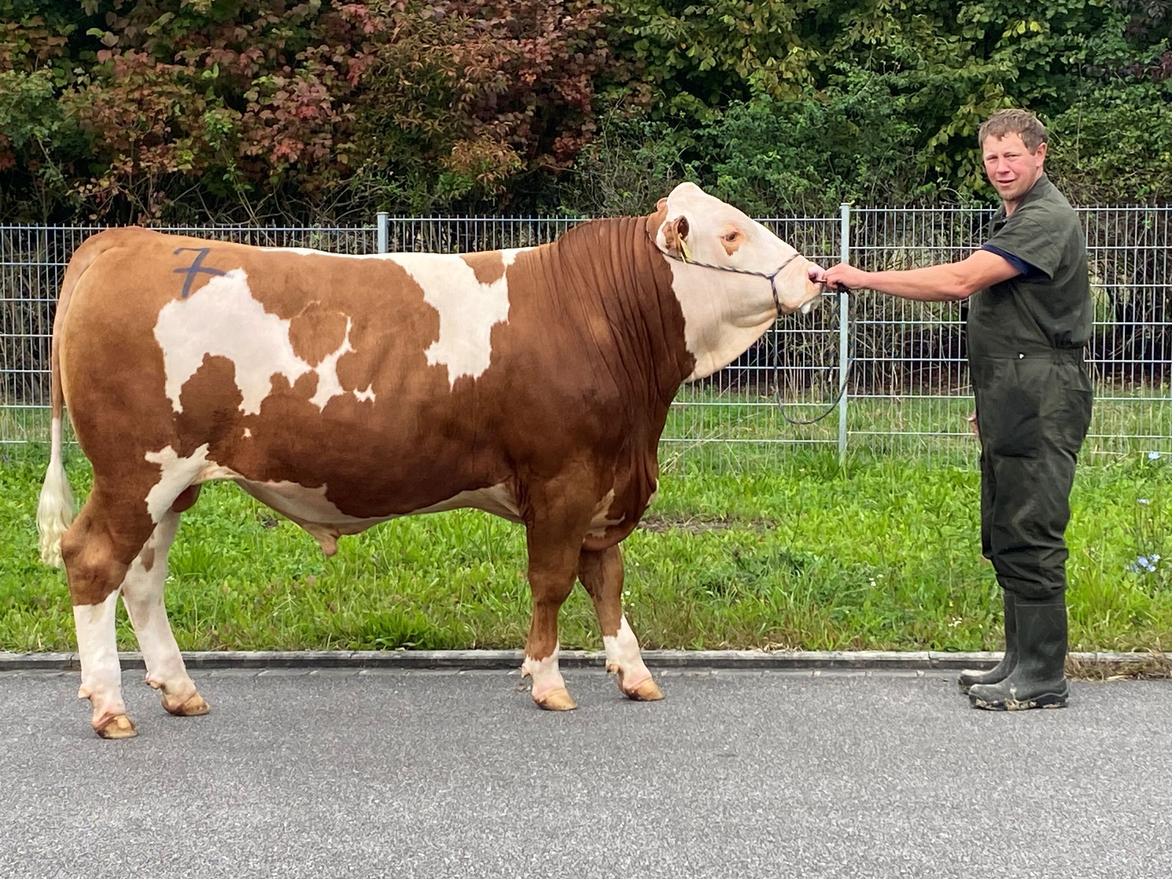 Foto: Spitzenbulle mit der Kat.-Nr. 7 vom Betrieb Georg Moosbauer aus Biberbach