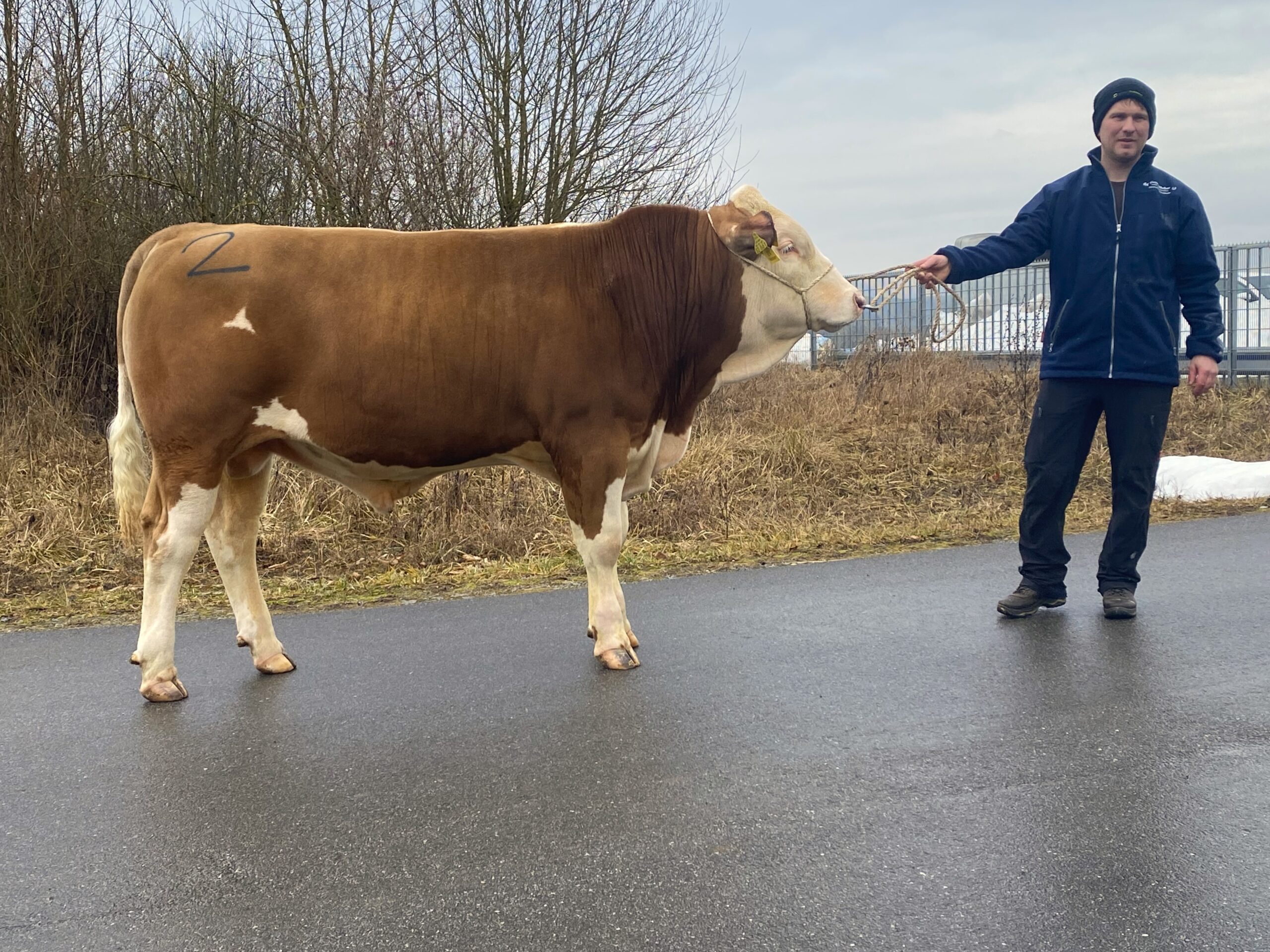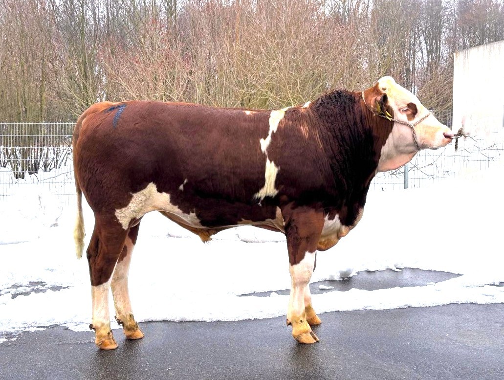Mit der Katalognummer 2 wurde ein weiterer Bulle von der Besamungsstation Neustadt/Aisch für 4.700 € ersteigert. Es handelte sich dabei um den zweitbesten von 117 getesteten Eisenherz P*S-Söhnen, der auch auf der Mutterseite mit Hotrod P*S aus Veltliner eine interessante Linienkombination vorweisen kann. Der mischerbig hornlose Bulle besitzt einen Gesamtzuchtwert von 137 bei sehr ausgeglichenem Zuchtwertniveau hinsichtlich Milch, Fleisch und Fitness. Die positiven Exterieurzuchtwerte hat er auch durch seine eigene gute Entwicklung und zudem einem sehr korrekten Fundament unterstrichen. Züchter dieses bisher einzigen Eisenherz P*S-Sohnes im Besamungseinsatz ist die Zierer GbR in Englmühle, Gemeinde Pfeffenhausen.