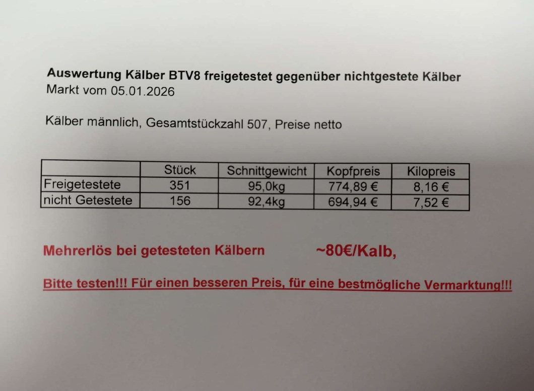 Hier finden Sie die Ergebnisse der letzten Kälbermärkte. SP=Spitzenpreis